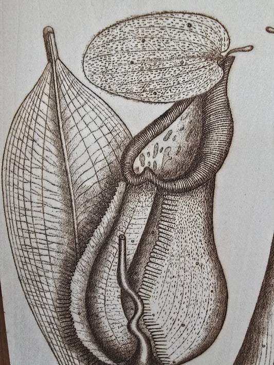 Laser engraved wood picture, Nepenthes, plywood (11 3/4 x 8 x 1/8 in)