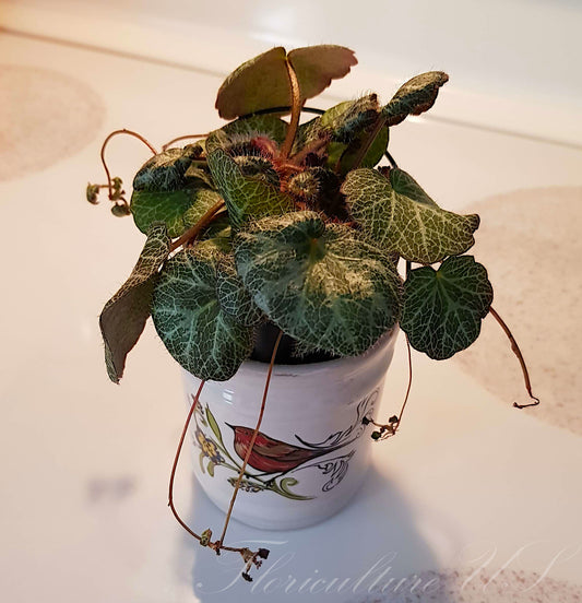 Vintage Ceramic Small Bucket With Metal Handle Bird Design Pottery