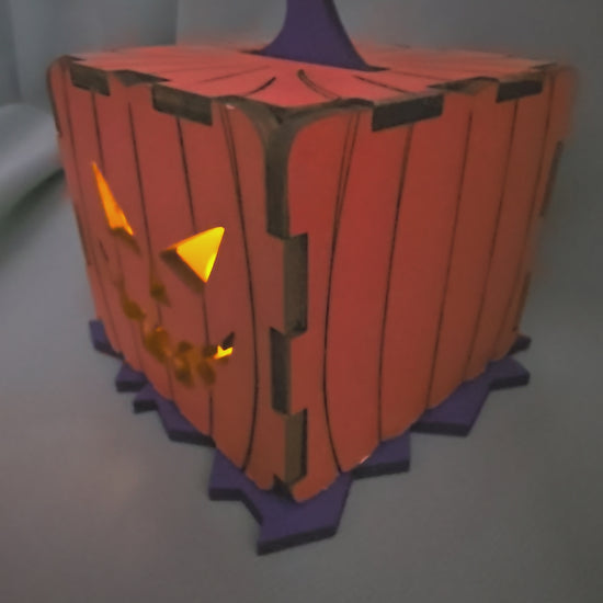 Halloween 3D Jack-O-Lantern Pumpkin, Laser Cut Plywood, Painted, w/ Tea Candle